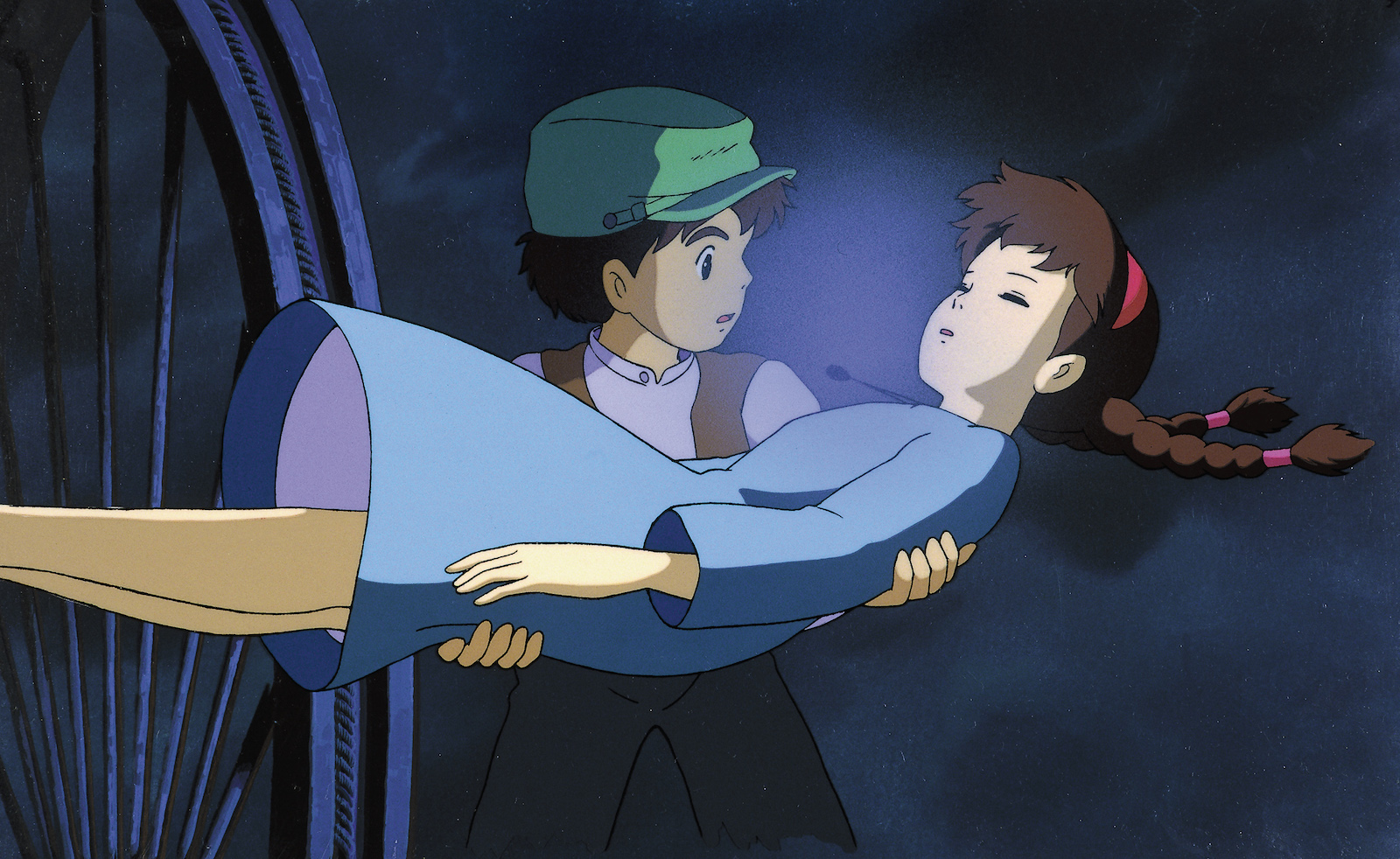 Pazu catching Sheeta in Castle in the Sky, 1986