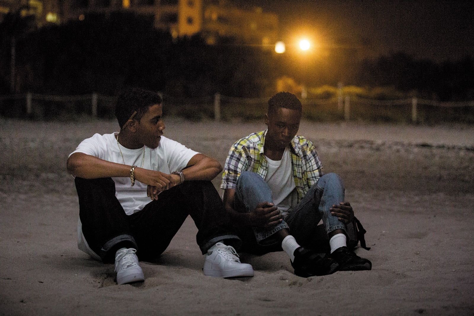 Jharrel Jerome and Ashton Sanders as the teenagers Kevin and Chiron in Moonlight
