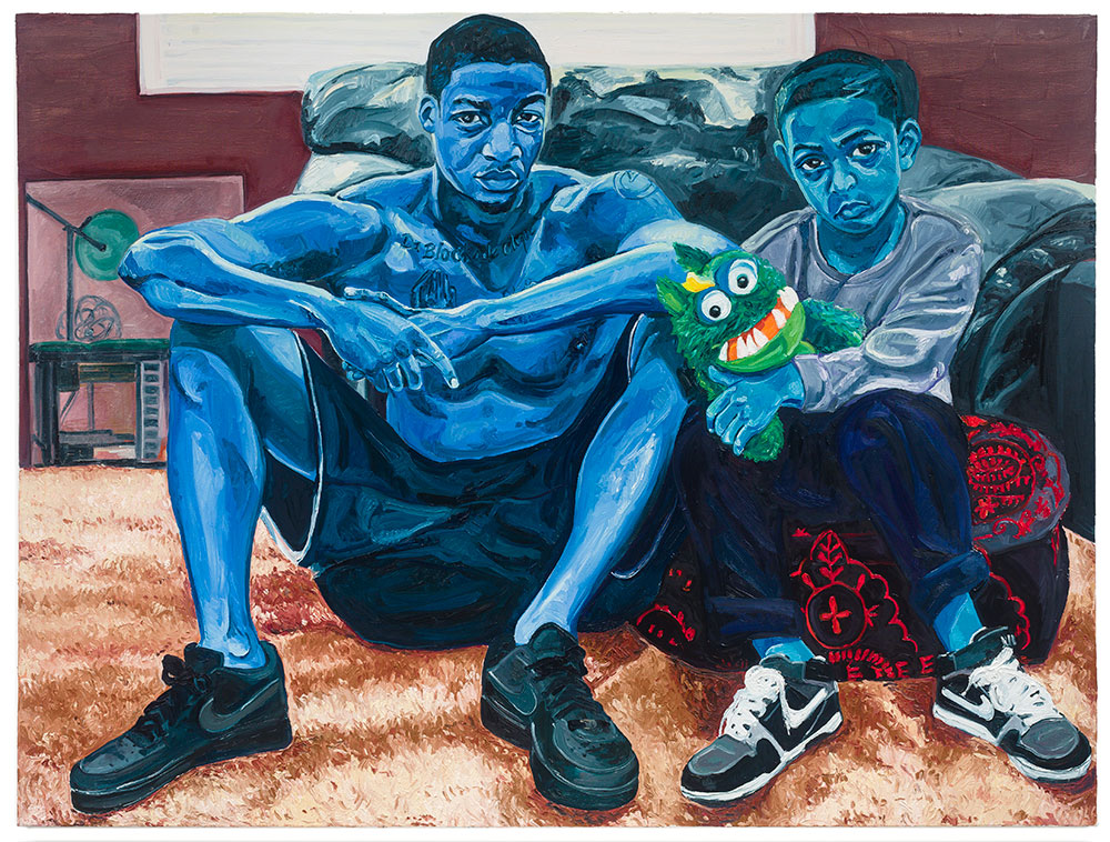 One hundred percent. I think the first painting I did in that body of work was in 2015, and it was of my brother and his son [Miles and Jojo] in which they’re blue figures. I went to my brother’s house that day with the intention of painting him by himself, and then my nephew got in the frame and was like, “I want to be a part of this.” So I kind of went with it, and then once I made that painting, I thought there was something special that occurred between them, and it created a new question for me to explore.