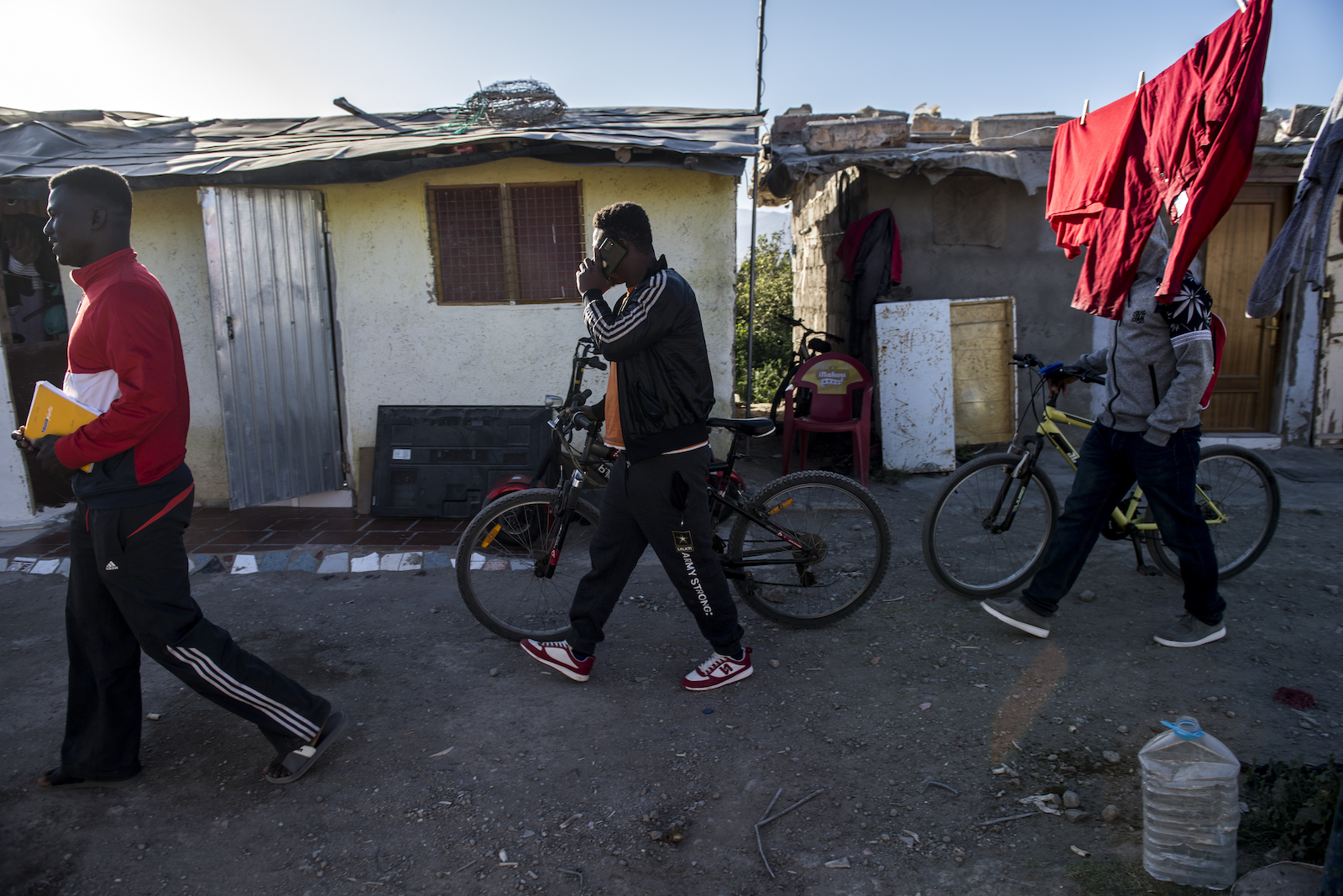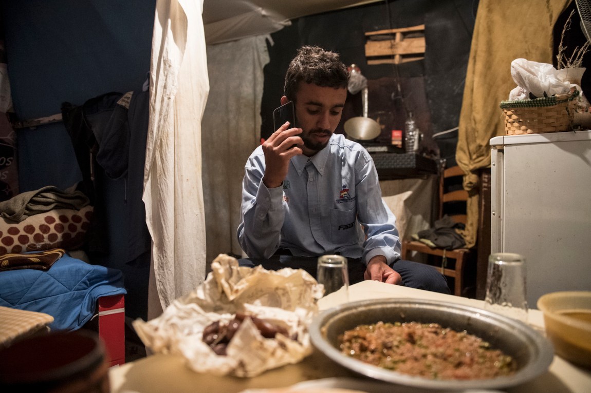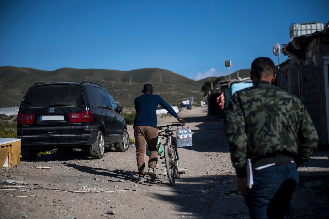Now she lives with her cousin, who had arrived eight months earlier after surviving the treacherous crossing through the waters of the Canary Islands. They share what looked like a living room and a bedroom under a large plastic tent. That day, Laila was preparing fresh juice for Iftar, the meal to break the fast after sunset during Ramadan. She told me about her three children, who live in Morocco: “Even when I make €50, I send it to my daughters,” she said. She can’t afford a trip home to visit them. “I just hope I see them again,” she said. “I could beg just to have them next to me.”