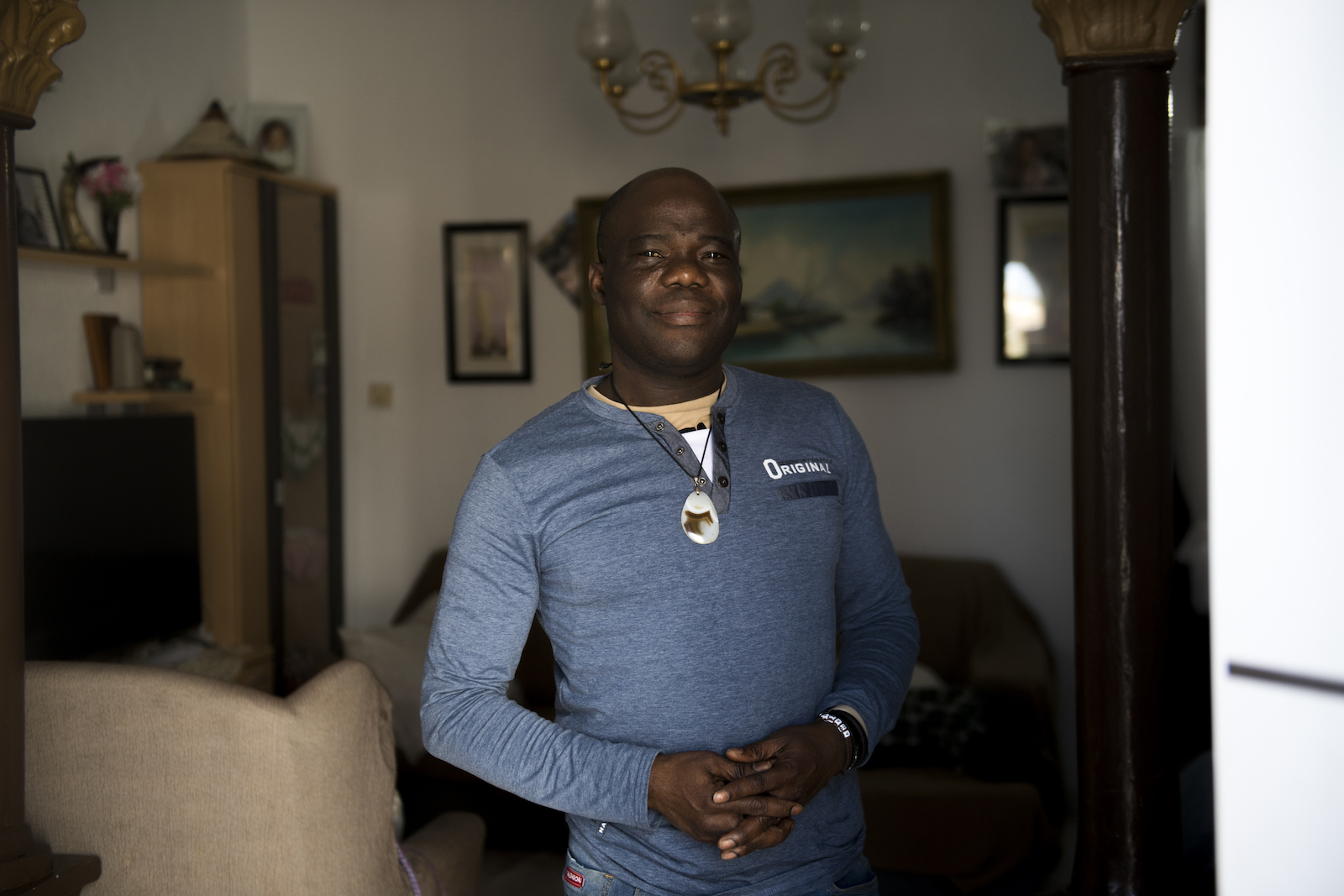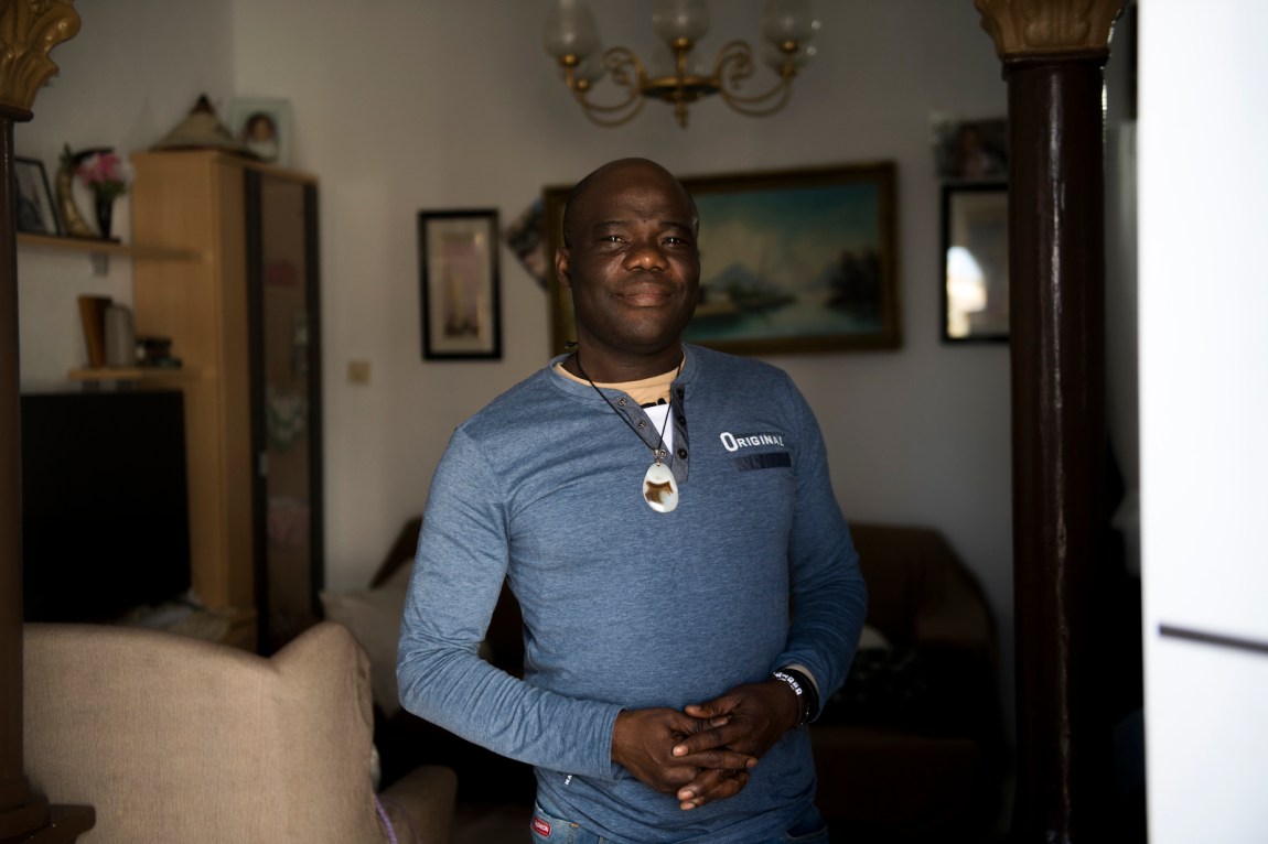 Adama Sangare Diarra, an aid worker with migrant laborers, at his home, Almería, April 2023