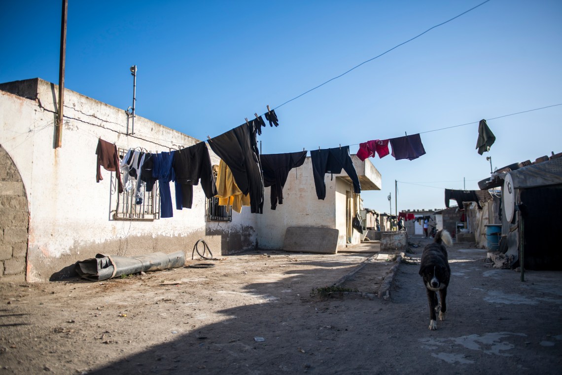 I tried to enter the warehouse where some migrants were being sheltered by the government, but I wasn’t allowed in. Two Romanian guards stood in front—Eastern Europeans often get better treatment and better jobs here—waiting for a food delivery that comes a few times a day. The migrants from El Walili were only supposed to stay fifteen days, then only two months. Some blocks away, the permanent apartments the government promised them aren’t ready yet.