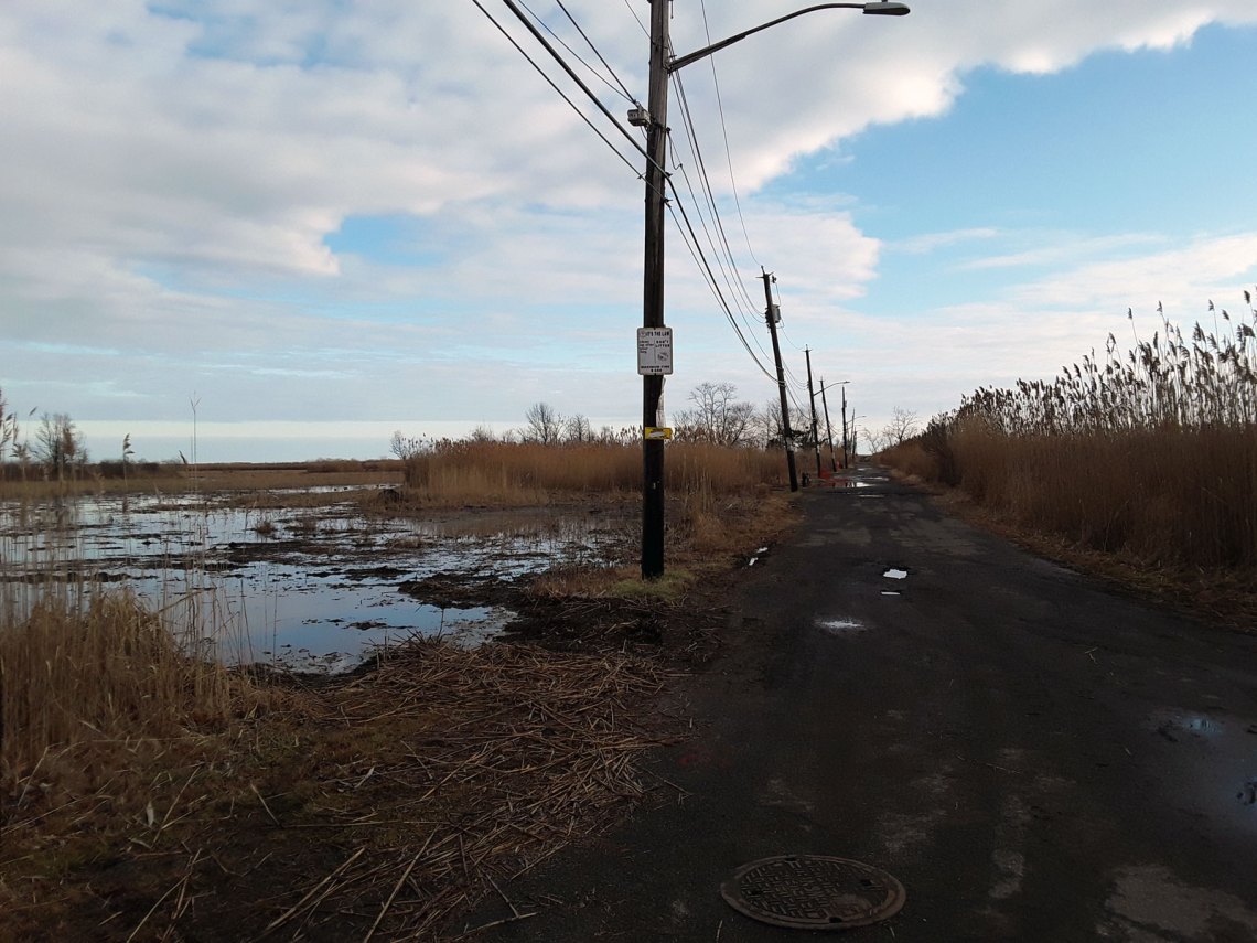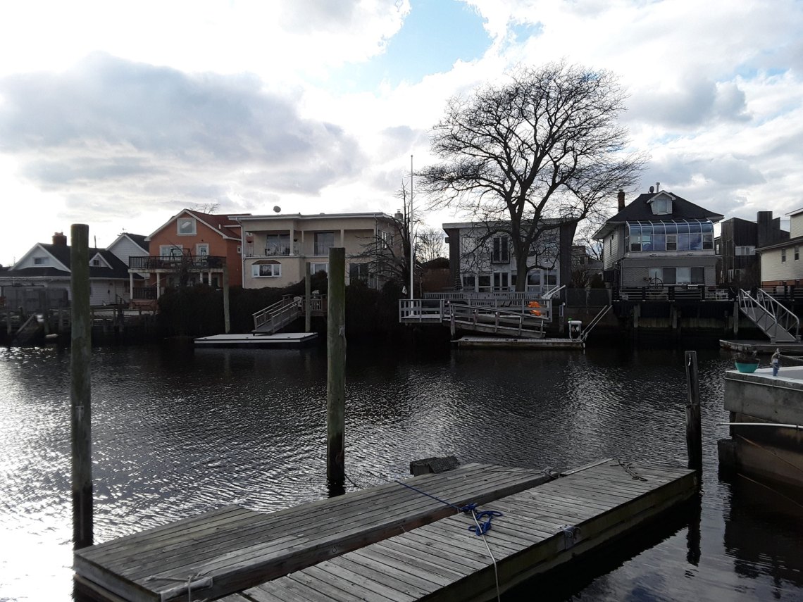 I only really understood what it means to build on wetlands when in January I visited Broad Channel, a working-class neighborhood of about 2,400 on an island in the middle of Jamaica Bay, connected to mainland Queens and the Rockaways by the Cross Bay Boulevard, which is built on dredged sand. From the street, you can be fooled into thinking you are in any quiet Queens neighborhood of snug, single-family homes, until you peek between houses and see they are all built along canals, with boats floating where the backyard should be. Broad Channel is one of the lowest-lying neighborhoods in New York, and the effects of sea-level rise are being felt now: the streets flood regularly every month around the full moon.