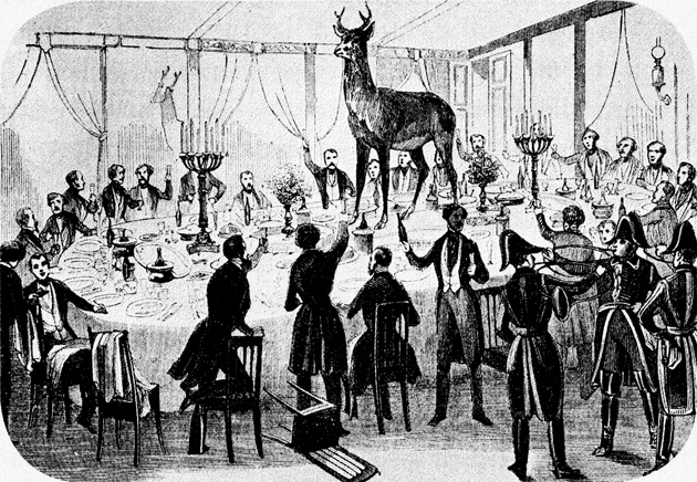 A supper to celebrate Saint Hubert, the patron saint of hunters, at the restaurant Véfour