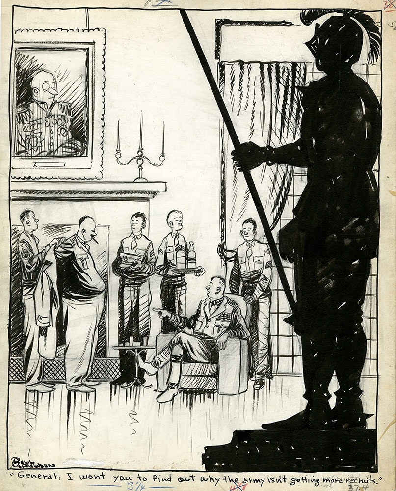 Even after the meeting Patton continued to complain, until finally Eisenhower wrote a letter to theater commander Ben Lear laying down the law. “A great deal of pressure has been brought on me in the past to abolish such things as Mauldin’s cartoons. . . . You will make sure that the responsible officer knows he is not to interfere in matters of this kind.” Eisenhower felt that, far from “syphoning morale” or inciting mutiny, Mauldin’s cartoons (and by extension the reporting in Stars and Stripes) let soldiers see their frustrations expressed. Also, of course, there was the small matter of the fact that the US of that era stood for freedom against the authoritarianism of the Axis. “Stars and Stripes is the soldiers’ paper,” Eisenhower said, “and we won’t interfere.”