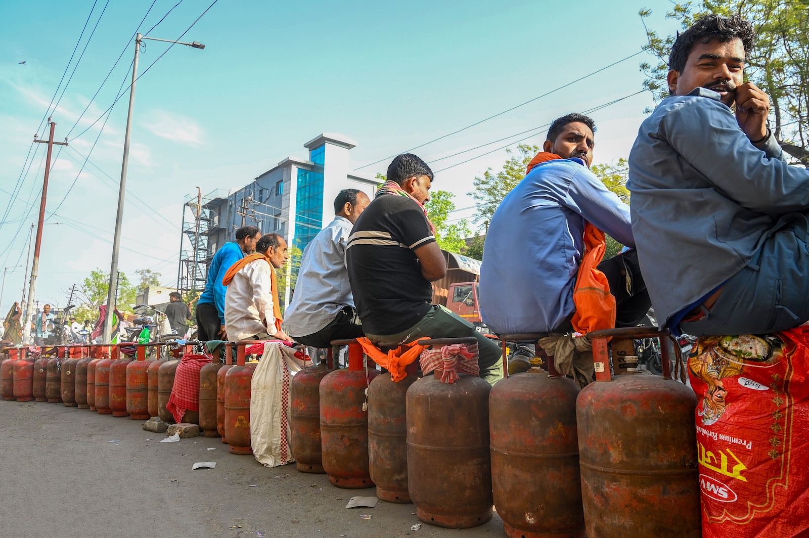 People waiting in hours-long lines for cooking gas cylinders amid disruptions in global energy supply chains, Noida, India, March 14, 2026