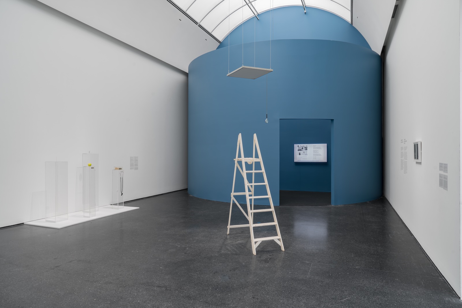 On the top floor of Chicago’s Museum of Contemporary Art, in a windowless, L-shaped white room just off the first gallery, handwritten koan-like sentences line the walls at eye level. At the entrance, the first two inscriptions read: “The Blue Room Event y.o. 1966” and “This room is bright blue.”
