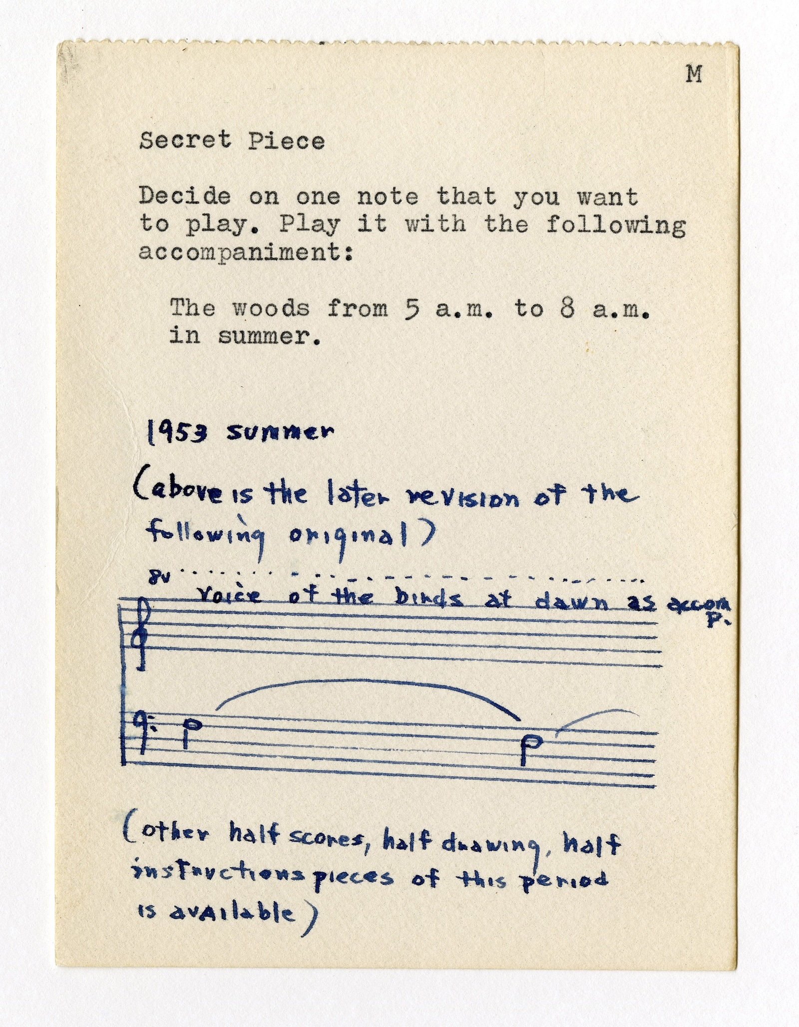 Now the work was realized, at least in part, by being seen. The instructions tighten the knot of artist, art, and audience into an almost claustrophobic intimacy: Ono is speaking to you directly; only you can play Secret Piece, and when you do, even in your head, the circuit is closed and the art is made whole. The texts, crisp and light, reveal enough of themselves to resist total abstraction, but they still showcase a luminous restraint.