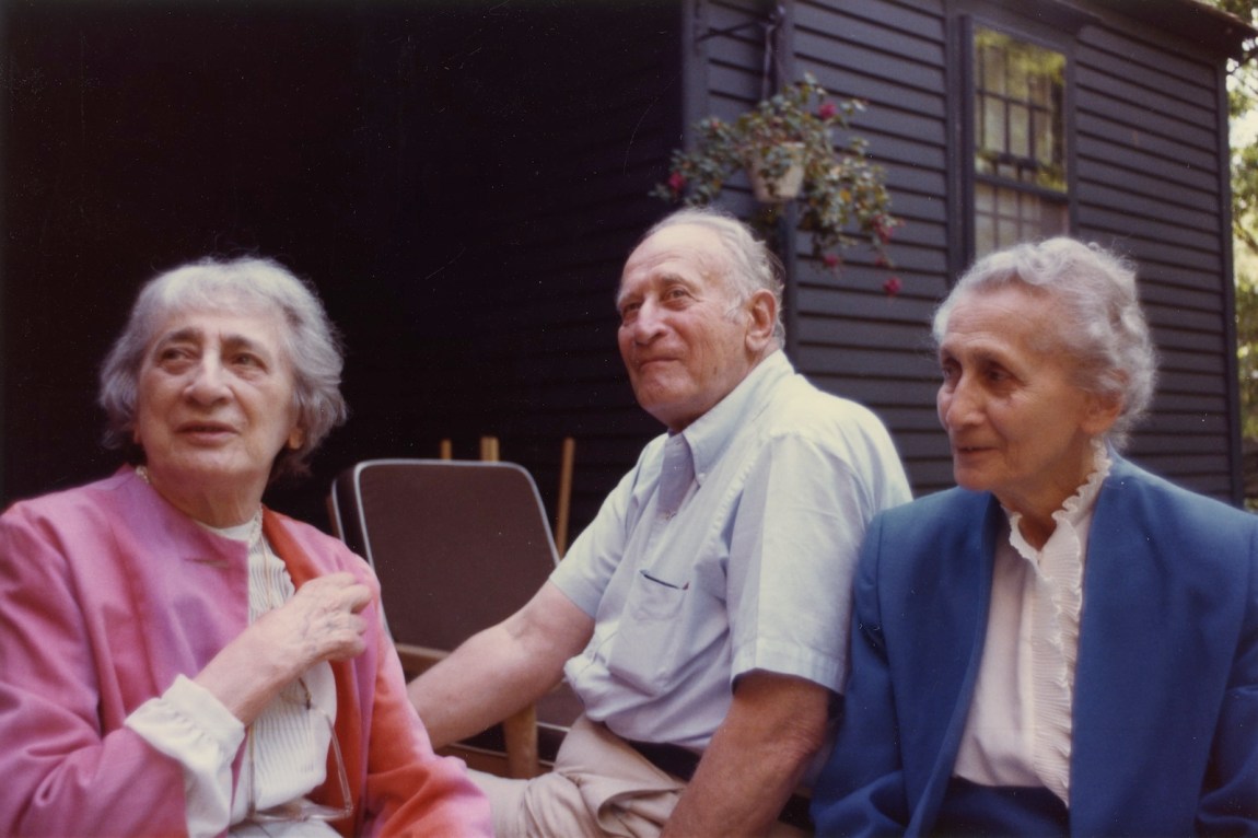 Anni Albers, Hans Farman, and Lotte Benfey at Albers’s eighty-fifth birthday party, 1984