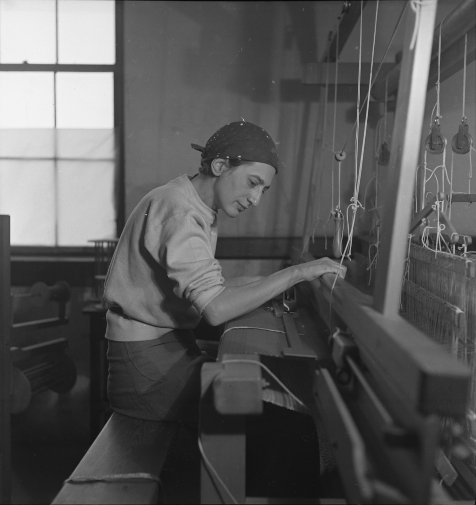 Anni Albers in her weaving studio at Black Mountain College, North Carolina, 1937