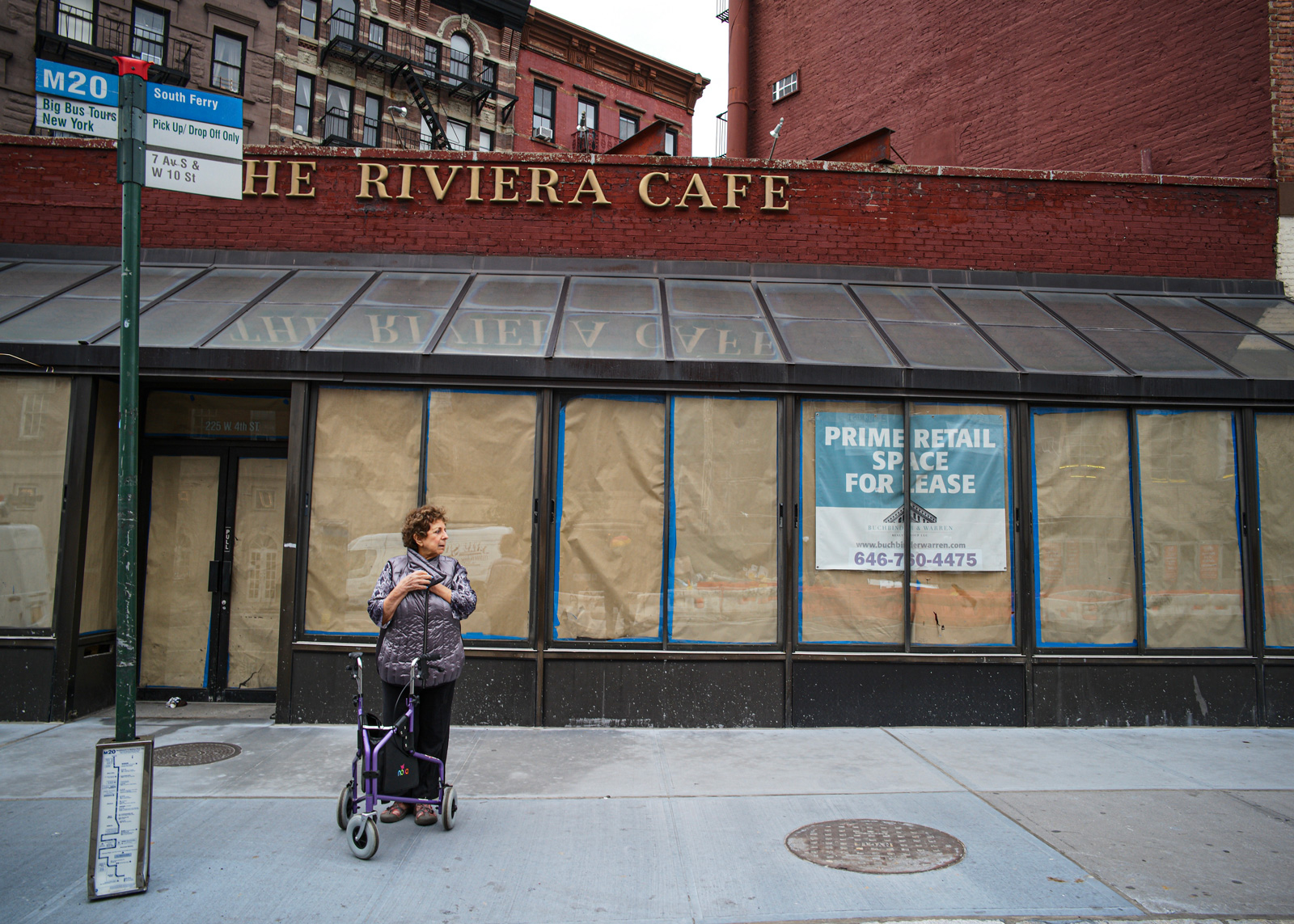When the Riviera Café, the forty-eight-year-old occupant of a wedge-shaped slice of 7th Avenue, closed in August 2017, its manager was stoic. “Things open, things close,” he told Gothamist. Last summer, in the lingering warmth of an August day, a real estate agent walking down 7th Avenue blared into his phone: “You could move into the Riviera space,” he said over and over, as if the listener was hard of hearing. The old café remains boarded up today.