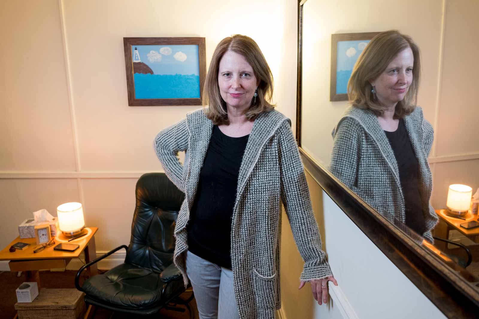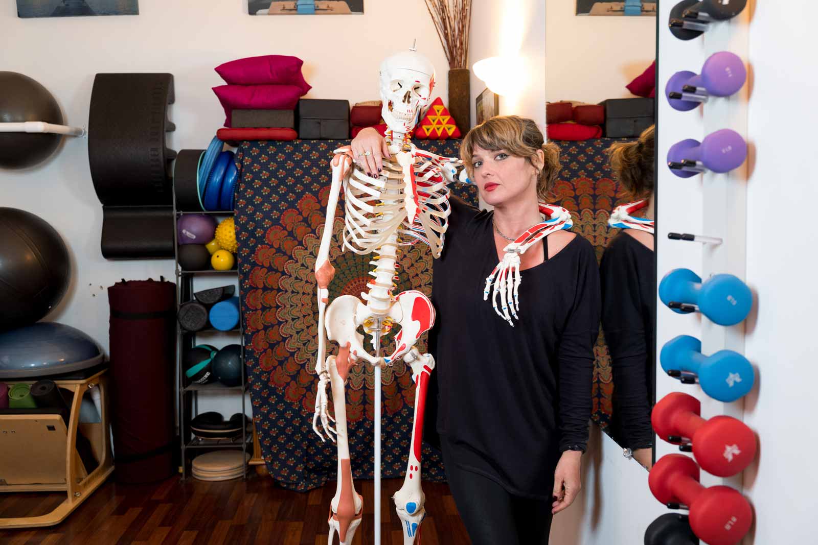 Pilates and yoga instructor Liz Kresch in her office, 2017