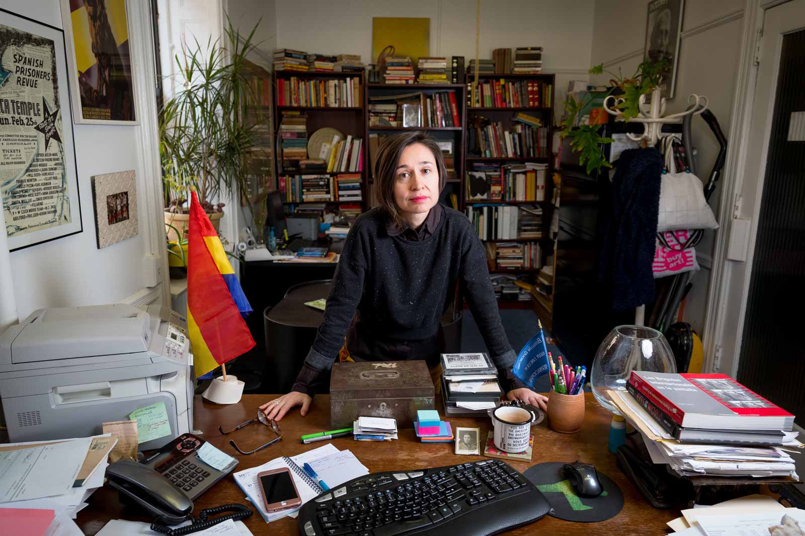 Marina Garde in the office of the Abraham Lincoln Brigade Archives, 2017