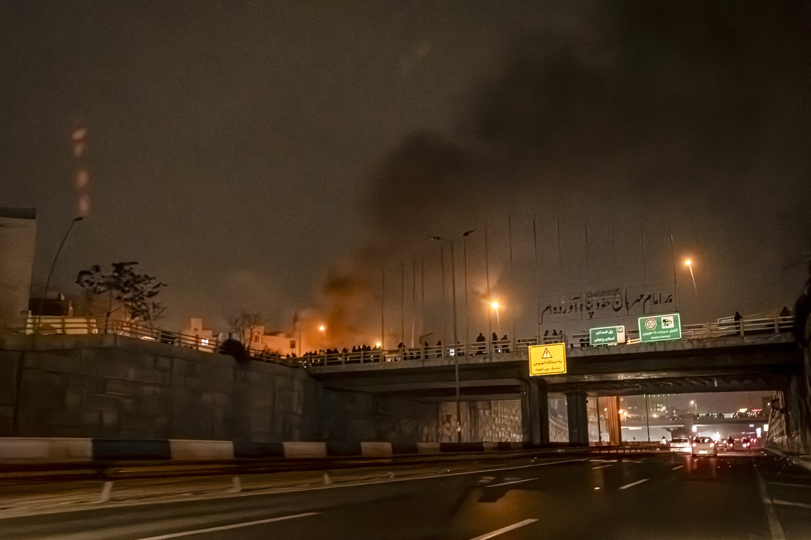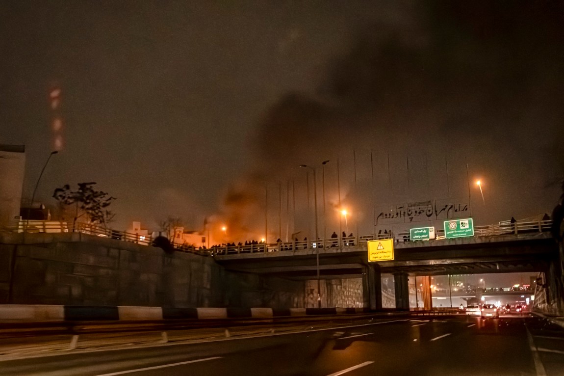 A crowd blocking a street during protests in Tehran, January 9, 2026
