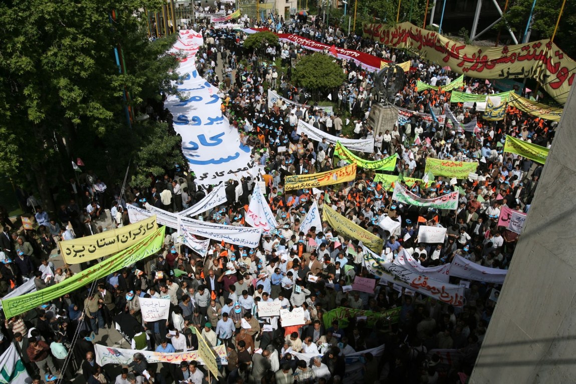 Iranians demonstrating on May Day to protest declining labor conditions, Tehran, Iran, 2007